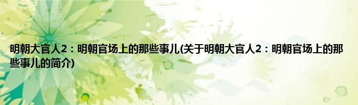 本文关于明朝大官人2:明朝官场上的那些事儿的简介就讲解完毕,希望对大家有所帮助。