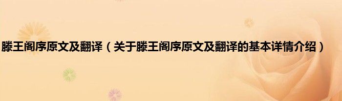 本文关于滕王阁序原文及翻译的基本详情介绍就讲解完毕,希望对大家有所帮助。