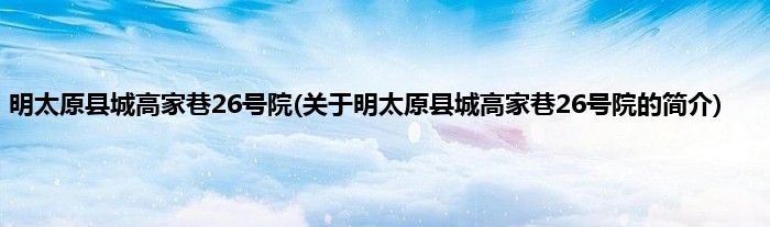 本文关于明太原县城高家巷26号院的简介就讲解完毕,希望对大家有所帮助。