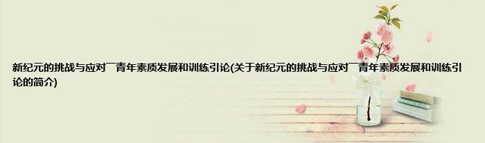 本文关于新纪元的挑战与应对――青年素质发展和训练引论的简介就讲解完毕,希望对大家有所帮助。