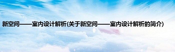 本文关于新空间——室内设计解析的简介就讲解完毕,希望对大家有所帮助。