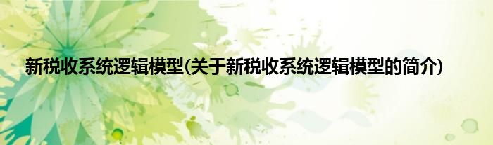 新税收系统逻辑模型(关于新税收系统逻辑模型的简介)