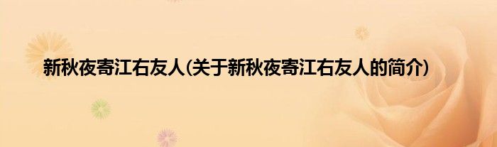 大家好,新秋夜寄江右友人,关于新秋夜寄江右友人的简介很多人还不知道,现在让我们一起来看看吧!