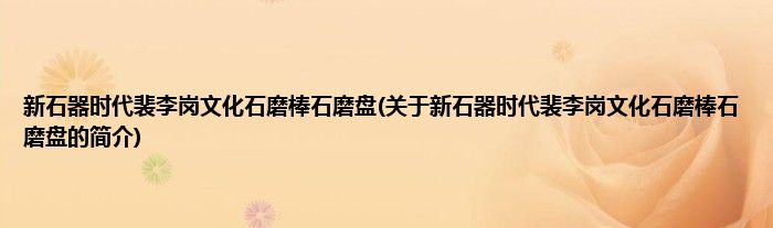本文关于新石器时代裴李岗文化石磨棒石磨盘的简介就讲解完毕,希望对大家有所帮助。