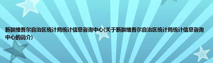 本文关于新疆维吾尔自治区统计局统计信息咨询中心的简介就讲解完毕,希望对大家有所帮助。