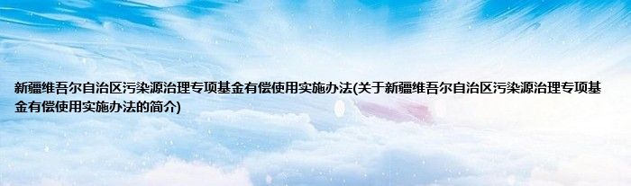 大家好,新疆维吾尔自治区污染源治理专项基金有偿使用实施办法,关于新疆维吾尔自治区污染源治理专项基金有偿使用实施办法的简介很多人还不知道,现在让我们一起来看看吧!