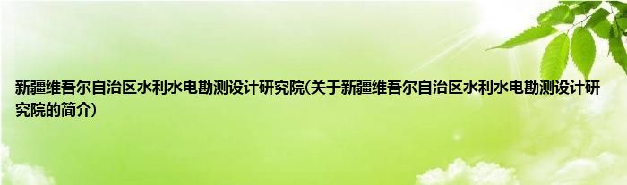 大家好,新疆维吾尔自治区水利水电勘测设计研究院,关于新疆维吾尔自治区水利水电勘测设计研究院的简介很多人还不知道,现在让我们一起来看看吧!