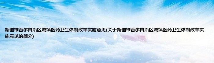 大家好,新疆维吾尔自治区城镇医药卫生体制改革实施意见,关于新疆维吾尔自治区城镇医药卫生体制改革实施意见的简介很多人还不知道,现在让我们一起来看看吧!