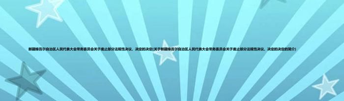 大家好,新疆维吾尔自治区人民代表大会常务委员会关于废止部分法规性决议、决定的决定,关于新疆维吾尔自治区人民代表大会常务委员会关于废止部分法规性决议、决定的决定的简介很多人还不知道,现在让我们一起来看看吧!