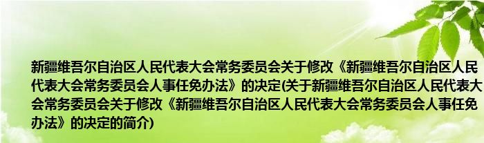 本文关于新疆维吾尔自治区人民代表大会常务委员会关于修改《新疆维吾尔自治区人民代表大会常务委员会人事任免办法》的决定的简介就讲解完毕,希望对大家有所帮助。