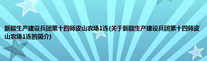 本文关于新疆生产建设兵团第十四师皮山农场1连的简介就讲解完毕,希望对大家有所帮助。