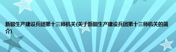 本文关于新疆生产建设兵团第十三师机关的简介就讲解完毕,希望对大家有所帮助。