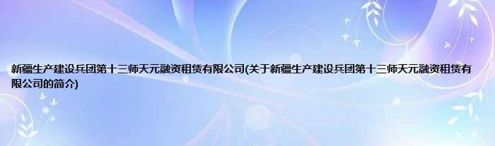 大家好,新疆生产建设兵团第十三师天元融资租赁有限公司,关于新疆生产建设兵团第十三师天元融资租赁有限公司的简介很多人还不知道,现在让我们一起来看看吧!