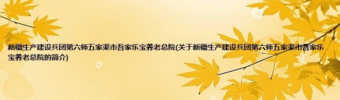 本文关于新疆生产建设兵团第六师五家渠市吾家乐宝养老总院的简介就讲解完毕,希望对大家有所帮助。