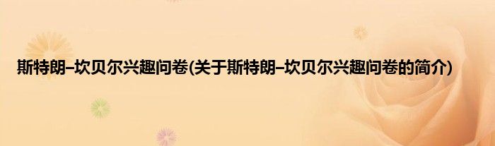 大家好,斯特朗–坎贝尔兴趣问卷,关于斯特朗–坎贝尔兴趣问卷的简介很多人还不知道,现在让我们一起来看看吧!