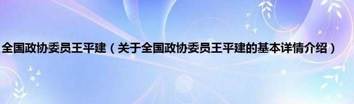 本文关于全国政协委员王平建的基本详情介绍就讲解完毕,希望对大家有所帮助。