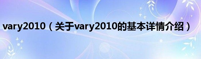 本文关于vary2010的基本详情介绍就讲解完毕,希望对大家有所帮助。