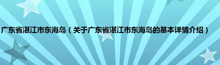 本文关于广东省湛江市东海岛的基本详情介绍就讲解完毕,希望对大家有所帮助。