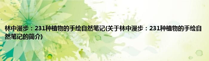 本文关于林中漫步:231种植物的手绘自然笔记的简介就讲解完毕,希望对大家有所帮助。