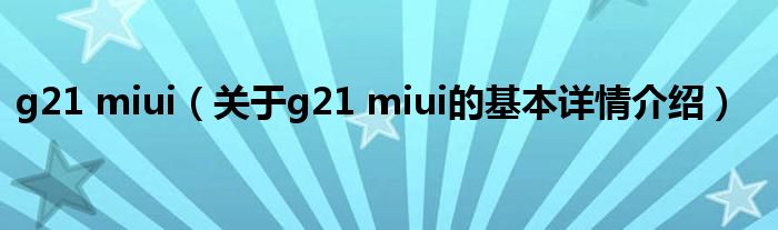 本文关于g21 miui的基本详情介绍就讲解完毕,希望对大家有所帮助。