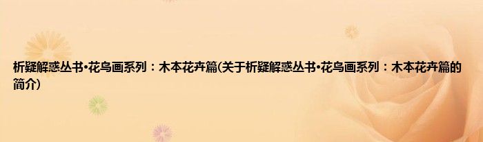 大家好,析疑解惑丛书·花鸟画系列:木本花卉篇,关于析疑解惑丛书·花鸟画系列:木本花卉篇的简介很多人还不知道,现在让我们一起来看看吧!