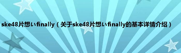 本文关于ske48片想いfinally的基本详情介绍就讲解完毕,希望对大家有所帮助。