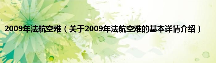本文关于2009年法航空难的基本详情介绍就讲解完毕,希望对大家有所帮助。