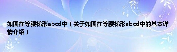 本文关于如图在等腰梯形abcd中的基本详情介绍就讲解完毕,希望对大家有所帮助。