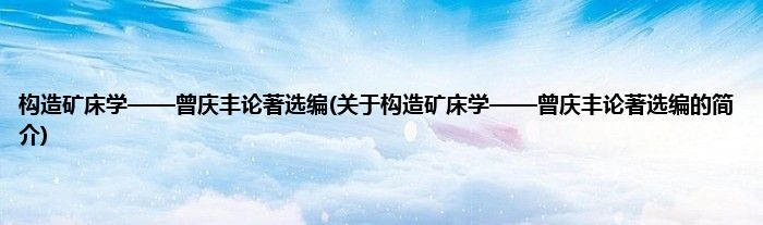 本文关于构造矿床学——曾庆丰论著选编的简介就讲解完毕,希望对大家有所帮助。