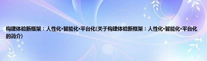 本文关于构建体验新框架:人性化·智能化·平台化的简介就讲解完毕,希望对大家有所帮助。