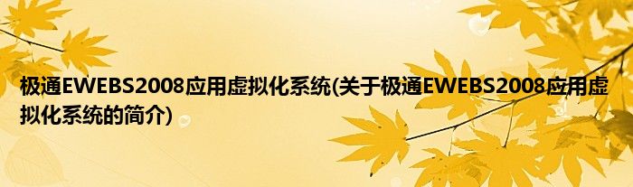 本文关于极通EWEBS2008应用虚拟化系统的简介就讲解完毕,希望对大家有所帮助。