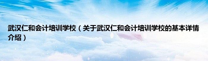本文关于武汉仁和会计培训学校的基本详情介绍就讲解完毕,希望对大家有所帮助。
