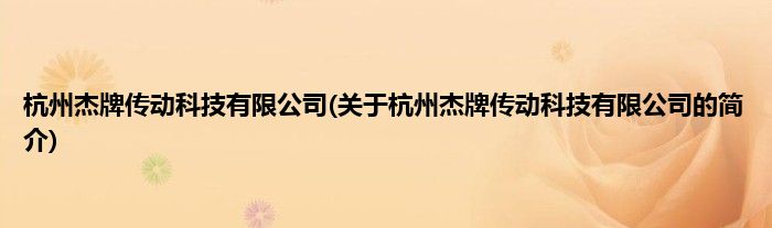 本文关于杭州杰牌传动科技有限公司的简介就讲解完毕,希望对大家有所帮助。