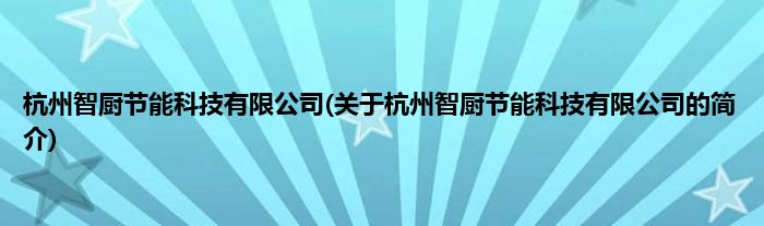 本文关于杭州智厨节能科技有限公司的简介就讲解完毕,希望对大家有所帮助。