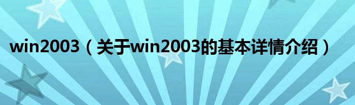 本文关于win2003的基本详情介绍就讲解完毕,希望对大家有所帮助。