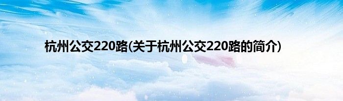 本文关于杭州公交220路的简介就讲解完毕,希望对大家有所帮助。