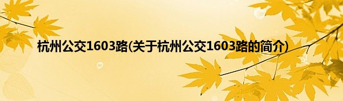 本文关于杭州公交1603路的简介就讲解完毕,希望对大家有所帮助。