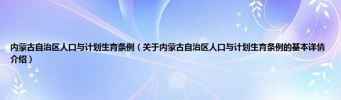 本文关于内蒙古自治区人口与计划生育条例的基本详情介绍就讲解完毕,希望对大家有所帮助。