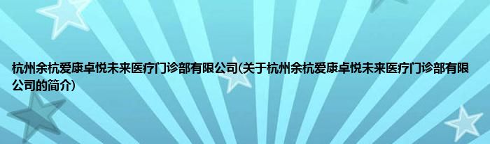 本文关于杭州余杭爱康卓悦未来医疗门诊部有限公司的简介就讲解完毕,希望对大家有所帮助。
