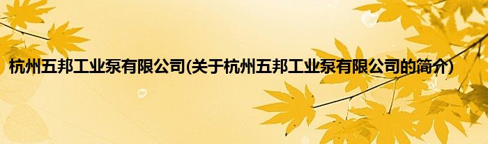 本文关于杭州五邦工业泵有限公司的简介就讲解完毕,希望对大家有所帮助。