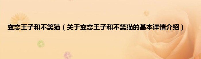 大家好我是小蝌蚪,变态王子和不笑猫,关于变态王子和不笑猫的基本详情介绍很多人还不知道,那么现在让我们一起来看看吧!