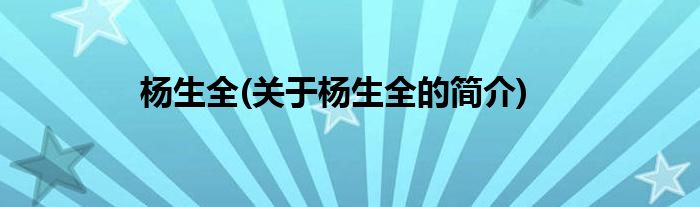 大家好,杨生全,关于杨生全的简介很多人还不知道,现在让我们一起来看看吧!