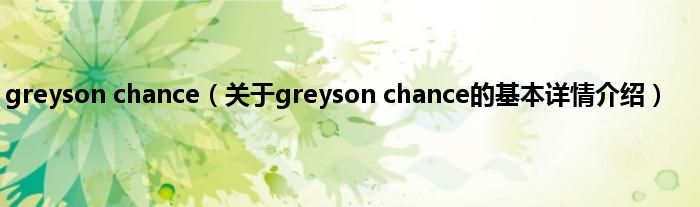 本文关于greyson chance的基本详情介绍就讲解完毕,希望对大家有所帮助。