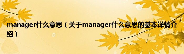 本文关于manager什么意思的基本详情介绍就讲解完毕,希望对大家有所帮助。