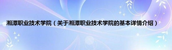 本文关于湘潭职业技术学院的基本详情介绍就讲解完毕,希望对大家有所帮助。