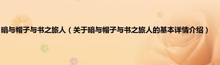 本文关于暗与帽子与书之旅人的基本详情介绍就讲解完毕,希望对大家有所帮助。
