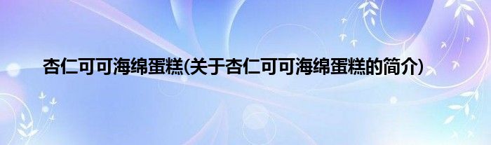 大家好,杏仁可可海绵蛋糕,关于杏仁可可海绵蛋糕的简介很多人还不知道,现在让我们一起来看看吧!