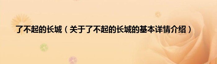 本文关于了不起的长城的基本详情介绍就讲解完毕,希望对大家有所帮助。