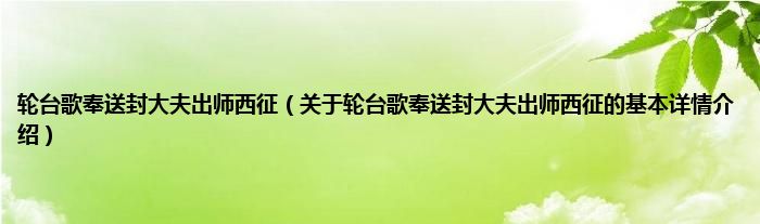 本文关于轮台歌奉送封大夫出师西征的基本详情介绍就讲解完毕,希望对大家有所帮助。
