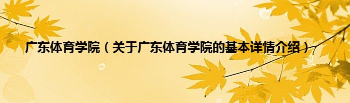本文关于广东体育学院的基本详情介绍就讲解完毕,希望对大家有所帮助。